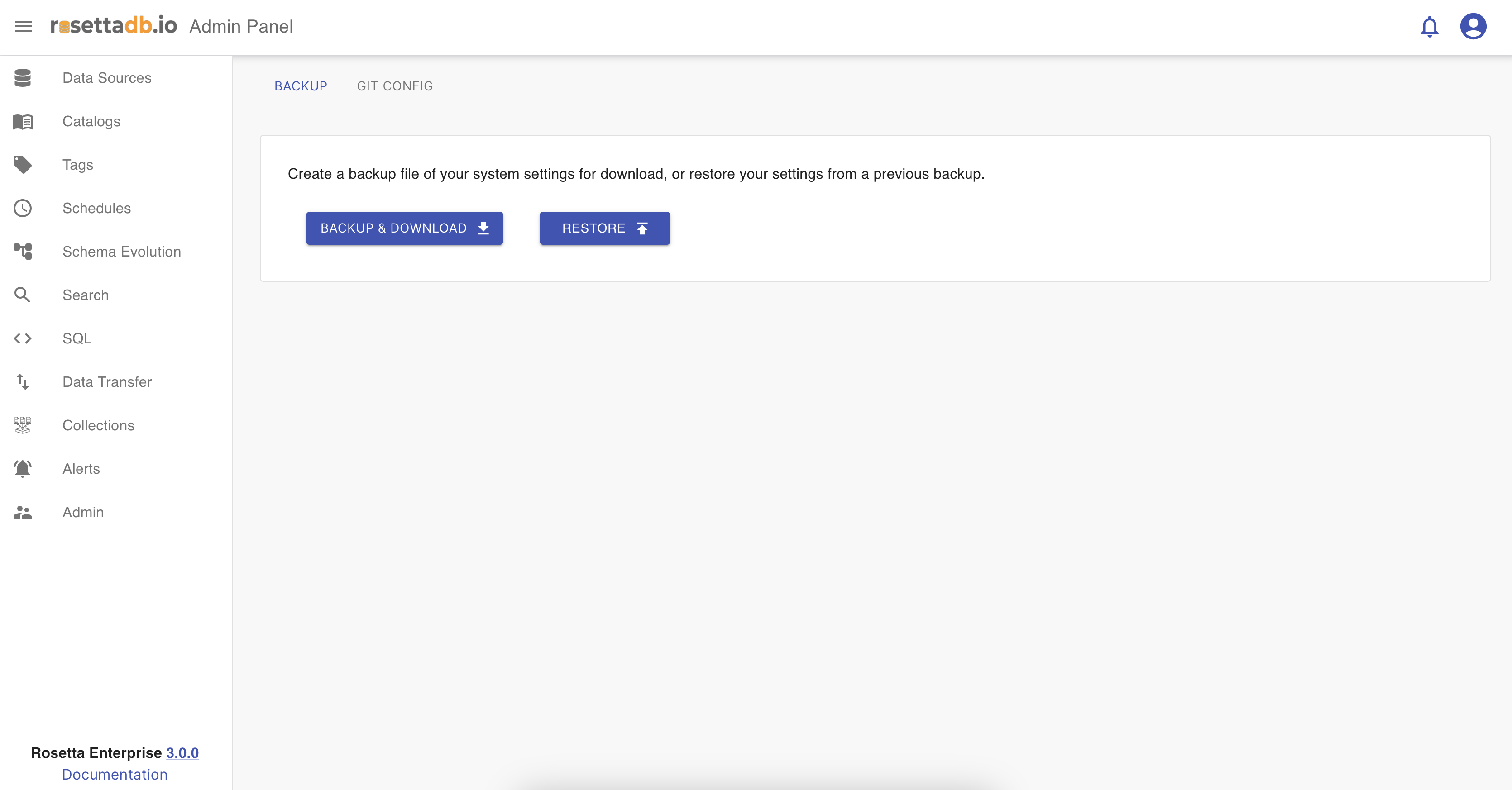 To back up the project settings, the user must go on Admin Panel and choose Backup tab and click the Backup & Download button.