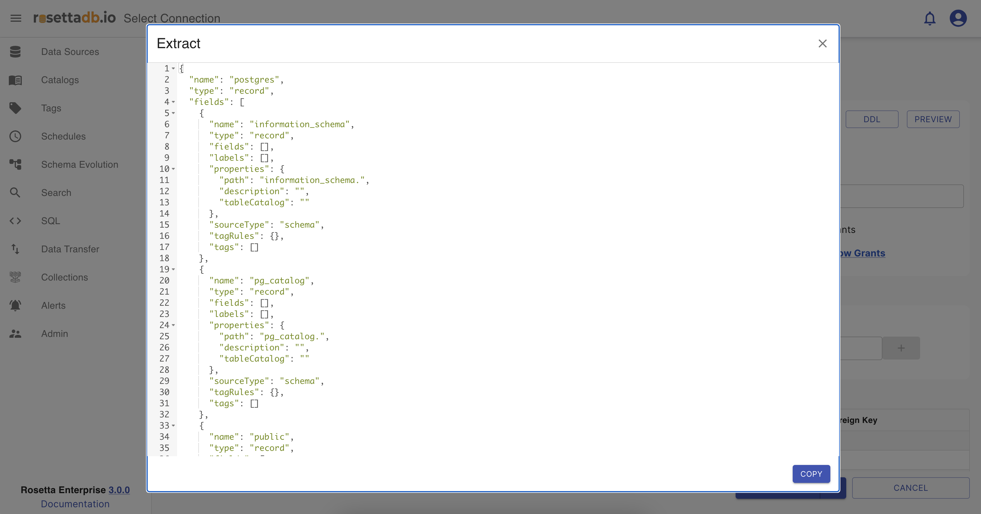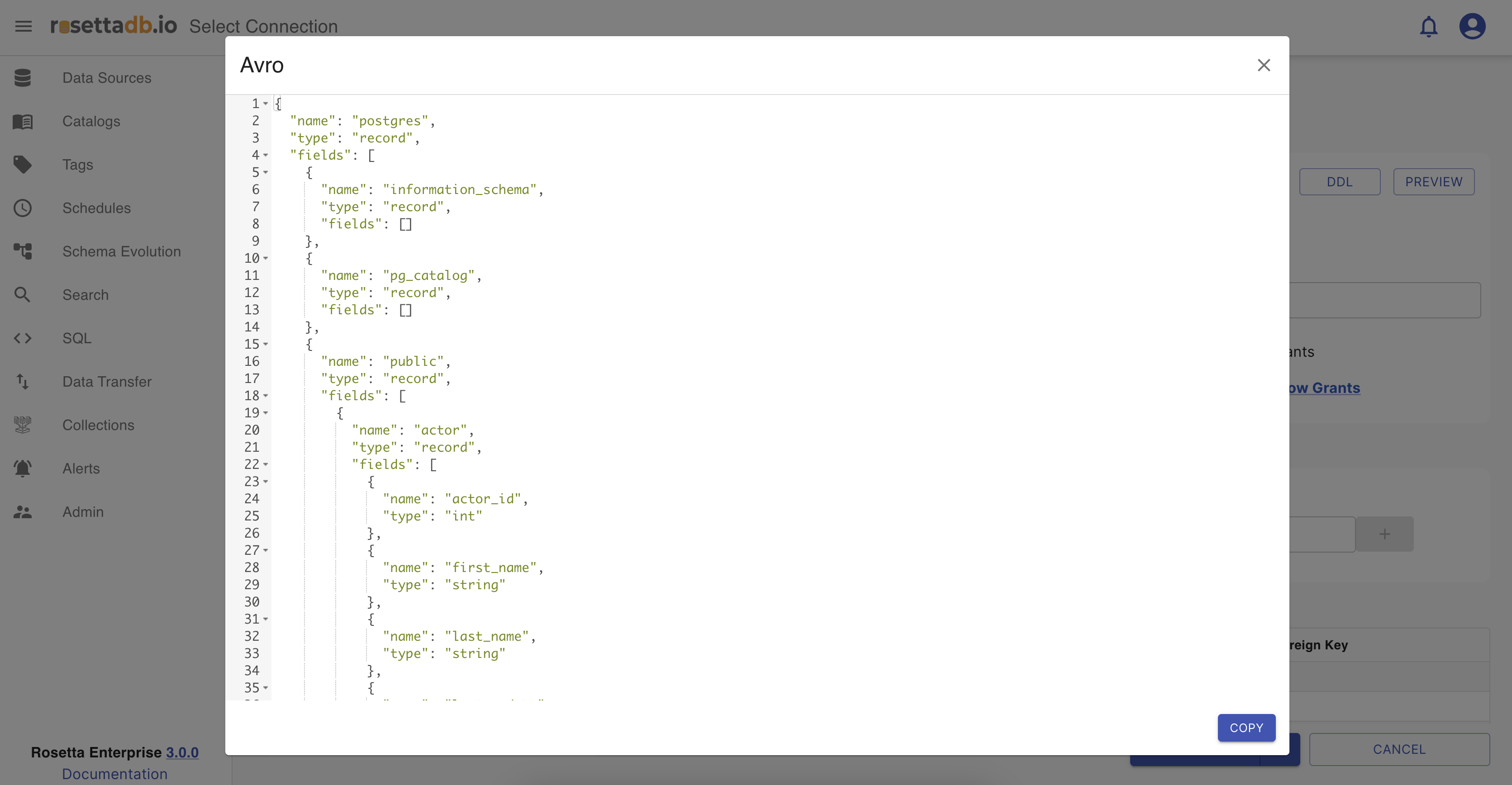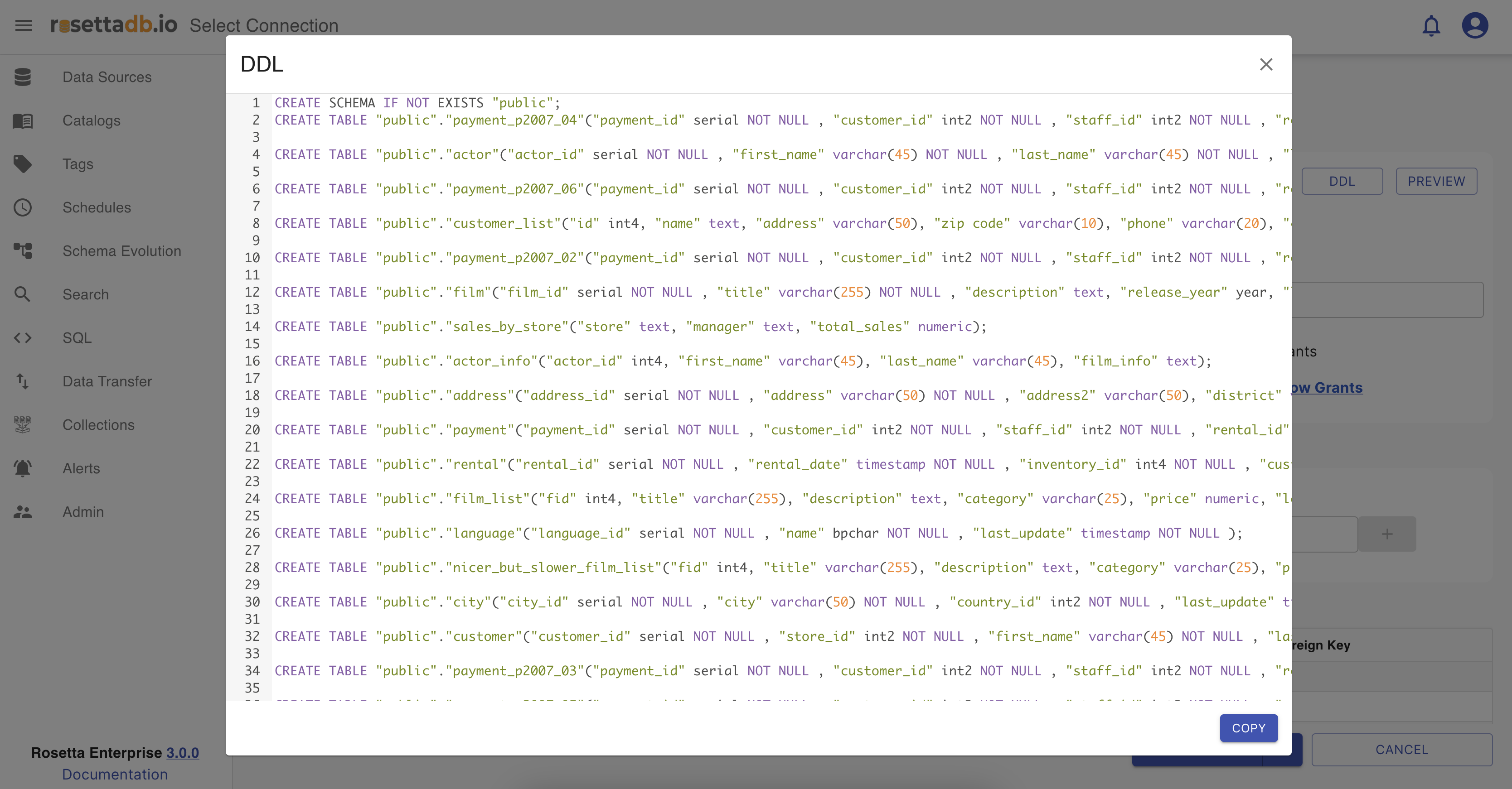 All of these schema types and DDLs can be copied and used in advance by clicking on their Copy button.