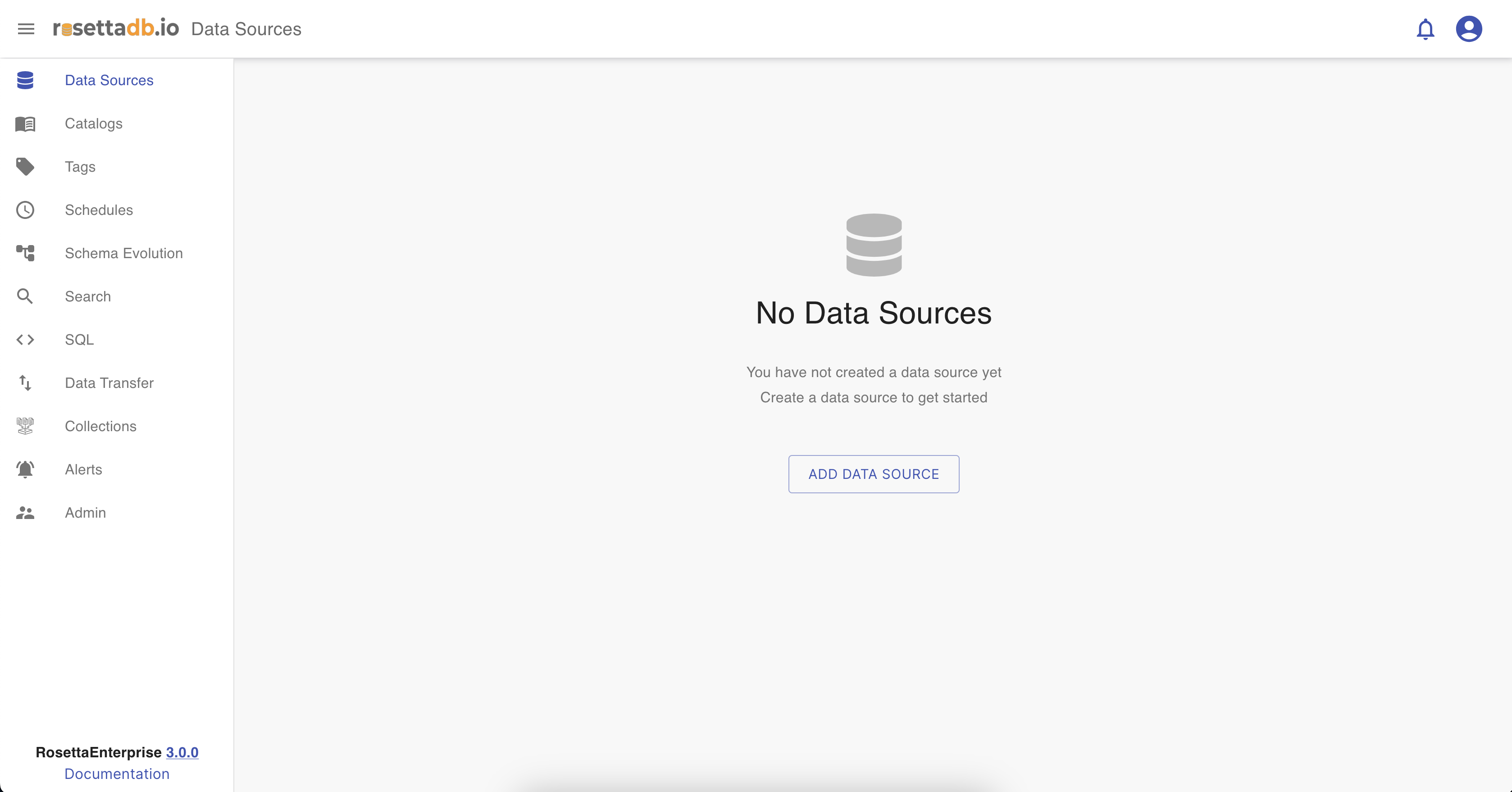 If there are no data sources configured, the user clicks on Add Data Source button to add a new data source.